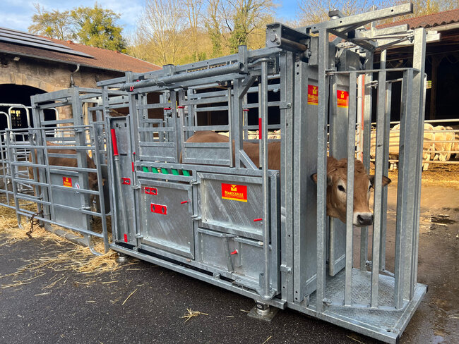 • Accès au cou de la bête à l'avant de la cage pour vaccination.